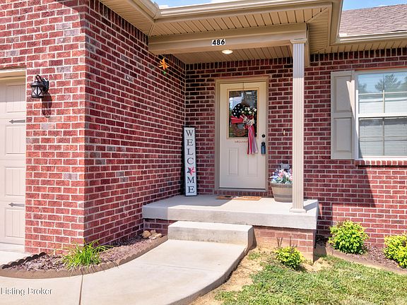 Welcome Home to 486 Riverview Lane. Gently used - only 2 years old! 3 bedroom 2 bath Ranch with walk-out basement. Great open floor plan, with Cathedral ceilings in living/dining area. Plenty of cabinet and counter space with huge center island and access to back deck. Perfect for entertaining! Primary suite features a private bath and walk-in closet. Unfinished walk-out basement has unlimited potential for additional living space, including access to the covered patio. Large fenced yard and 2 car garage complete this lovely home. Easy access to I-65. Call today to schedule your private tour.