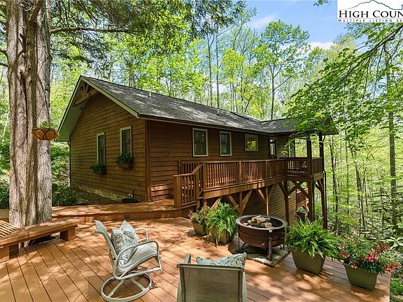 Welcome to your mountain retreat, nestled at the end of a quiet cul-de-sac with seasonal views and the perfect blend of comfort, function, and location! This meticulously maintained home offers effortless living both inside and out, just 15 minutes from Boone and Sugar Mountain, and 20 minutes to Blowing Rock or Banner Elk. Enjoy generous outdoor living across multiple freshly stained decks (April 2025), surrounded by easy-care perennial gardens, filled with native plants. Inside, you'll find a bright and open main level with large windows that fill the living, dining, and kitchen areas in natural light. Solid surface countertops and a gas range add a touch of modern convenience to the well-appointed kitchen. The primary suite and laundry on the main floor allow for true one-level living, while a second living space downstairs provides flexibility for an office, guests and hobbies. Designed for everyday ease, the home includes thoughtful features like a whole-house generator, central vacuum, large and extra-deep closets, pull-down attic, an encapsulated crawlspace with a unique “trap door” access, and dedicated workshop/hobby/storage space. Whether hosting a gathering under the handsome, oversized detached carport (which doubles as a covered pavilion) or enjoying a quiet moment with nature, this home invites you to relax in style. Short-term rentals are not permitted, preserving the tranquility of this peaceful community. Discover low-maintenance, high-comfort living in a central High Country location that truly has it all!