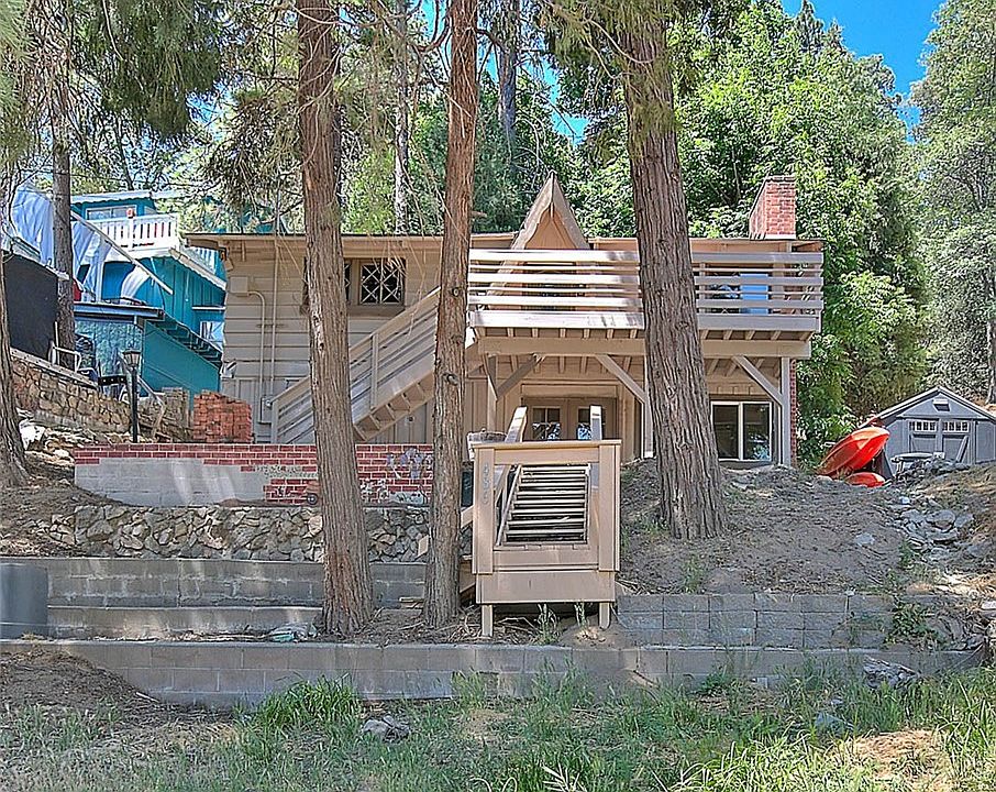 Nestled in the peaceful mountain community of Crestline, this inviting two bedroom, two bathroom home offers, comfort, space, and classic charm. The home features a cozy fireplace on each level perfect for chili Mountain evenings. Downstairs you'll find a spacious living room, ideal for relaxing or entertaining, a full bathroom and a large laundry room for your convenience. There's also a versatile workshop area great for hobbies or additional storage. Upstairs, two generously sized bedrooms, sharing a second floor bathroom, offering plenty of space for families or guests. Step into warmth and character with this inviting cabin style home featuring stunning bolted, wood beam ceilings that create an airy, open atmosphere in the living and kitchen area. The rich, natural wood accents draws your eyes upward, making the space feel expansive and full of light. A cozy stone fireplace anchors the room, perfect for relaxing evenings. The open floor plan includes a central island and dining space ideal for gatherings, all set against beautiful wood flooring that enhances the rustic charm. Whether you are looking for the full-time home or a peaceful getaway, this property blends, comfort with cabin elegance in every corner. Minutes from Lake Gregory. additionally, it offers hiking trails and access to local parks. The property is being sold as-is and requires minor repairs and TLC.
