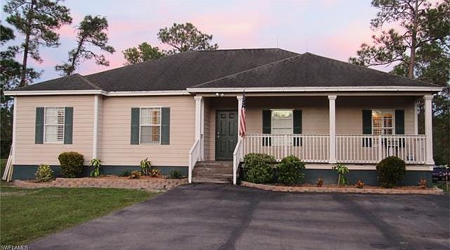 Located in Golden Gate Estates this 3 /2 bath home boasts of country living with a southern style front porch and large back deck. Property is fenced in for privacy. along with the safety of two lightning protection rods and a security system. Priced to sell this home will not last long. Plenty of room for a pool, horse barn or shop. A must see.