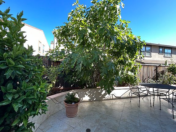 Fully tiled, low maintenance backyard with roses and fruit trees and automated sprinkler system