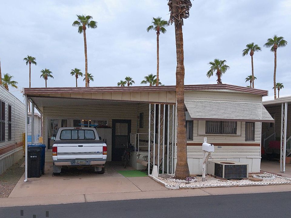 Great Location! Close to the Community Center & Pickleball/Tennis Courts! New Pex Pluming Recently Upgraded, Covered Carport, L-Shaped Kitchen, Microwave, Furnished, Ceiling Fans, Queen Size bed Central A/C & Heat and more! **Lot Rent is Noted Online as an Estimated Monthly Breakdown that is DUE ANNUALLY**Some Items Pictured May Not Convey.