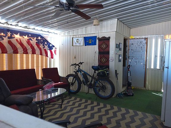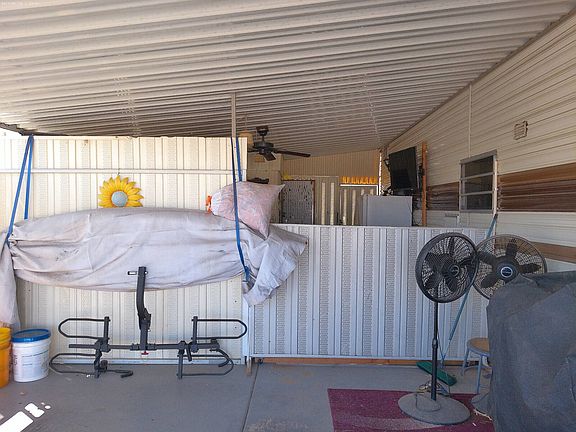 Corner Lot! L-Shaped Kitchen, Built in Microwave, Flat Screen TV's, Ceiling Fan, Blinds, Laminate Floors, Privacy Screens, Recliner, Queen Bed, Built in Drawers, Stackable W/D, Privacy Screens, Enclosed Carport, Plenty of Storage, Outdoor Living Area, Shed, Newer Central A/C & Heat. Lot Rent Paid Until March 2026!