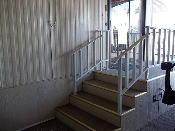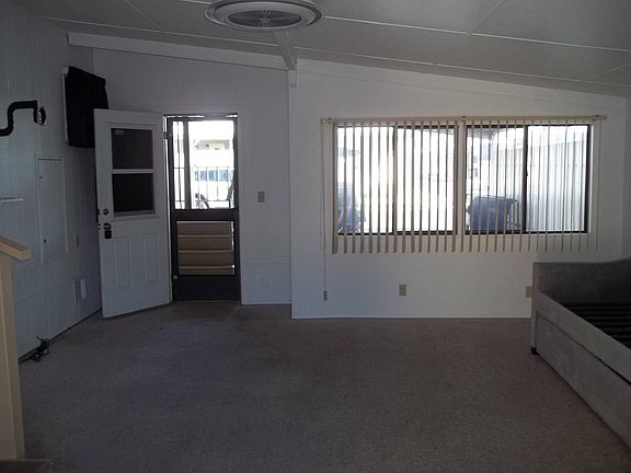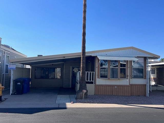 On the Wall! Arizona Room, Plenty of Storage, Laminate Floors, L-Shaped Kitchen, Wall Hung Flat Screen TV, Large Refrigerator & a Large Freezer, Laundry Room with Full Size Stackable W/D and Extra Half Bath .AZ Room Vented with A/C, Private Back Patio, Tiled Walk-in Shower, Full Bed, Built in Drawers, Upgraded Ceiling Fans, Private Outdoor Sitting Area, Room for a Car & Golf Cart, Central A/C & Heat! LOT RENT PAID UNTIL OCTOBER 2026!