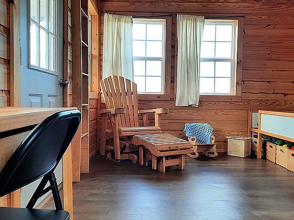 Raw pine shiplapWalk in showerCovered porchesWood burning stoveHardwood flooringOpen pastureButcher block countertops