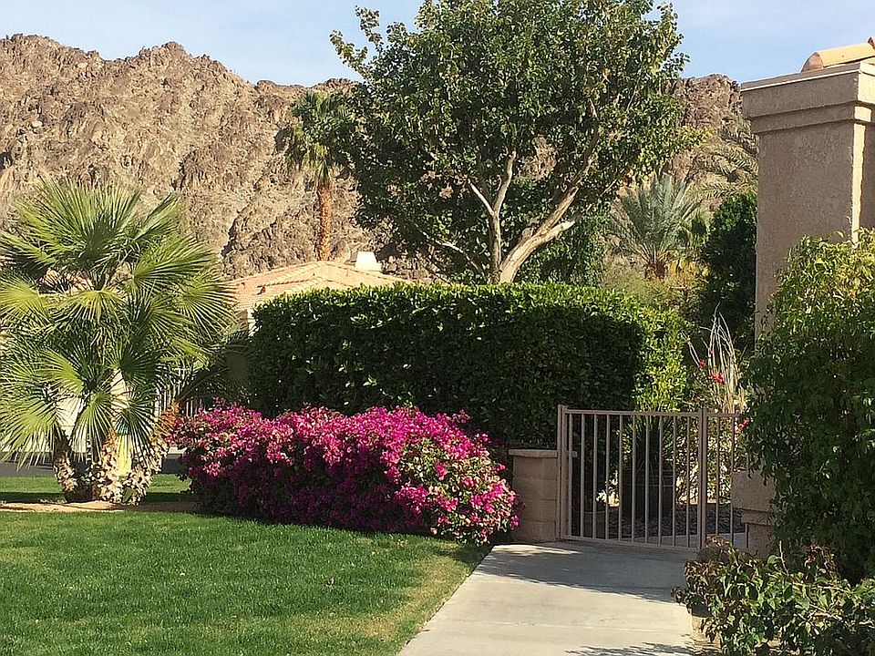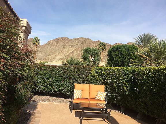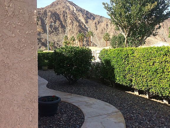 Prime corner lot with dramatic Santa Rosa Mountain Vistas!! This impeccable remodeled home has 3 Br, 2 Ba with designer finishes and attention to detail thru-out. Chiefs kitchen with dinning nook enjoys fabulous mountain views. Just a few of the many upgrades include; slab granite counters, custom hardwood cabinetry, tile floors. The spacious living room w/fireplace opens to a delightful enclosed and lushly landscaped patio with breathtaking mountain backdrop. A great space for entertaining and relaxing with family and friends. The master suite and remodeled en suite bath with luxury travertine finishes and seamless glass enclosed walk-in shower has good separation from two additional guest rooms. Laguna De La Paz is nestled against the mountains with wonderful greenbelts, a 5 acre lake with walking paths, 15 community pools (16 spas), exercise room, tennis courts, bocce ball courts, men's & women's saunas, Clubhouse and perhaps the best location in south La Quinta! A must see!!!