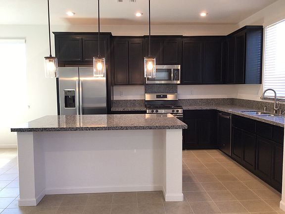 This home features 4 bedrooms, 3 bathrooms, and a loft. It boasts a large kitchen with stainless steel appliances and granite countertops, laminate flooring in the living areas, and carpet in the bedrooms. You'll also find upgraded fixtures and ceiling fans throughout, along with a tankless water heater, whole house fan, solar panels, and a washer and dryer. The backyard includes several fruit trees.