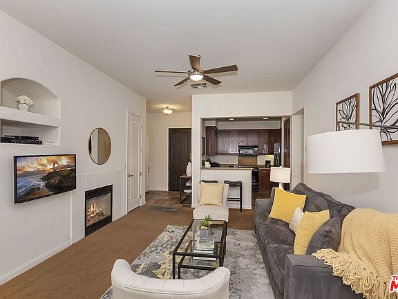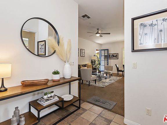 Fully furnished villa in prime location. This residence offers 2 bedrooms, 2 bathrooms with soaking tubs, 2 private terraces, 2 fireplaces, a fully equipped kitchen, queen sofa bed, in-unit laundry, and private garage parking. Sleeps up to 6. Community amenities include 12 salt-water pools with cabanas, beach-entry kids' pool with splash area, Jacuzzis, hammock garden, fitness center, and a 13,000 sq. ft. clubhouse. Located within the secured, 24 hour guard-gated Legacy Villas community in La Quinta. Prices vary depending on availability and season. Listed price is for summer months and vary depending on the season.