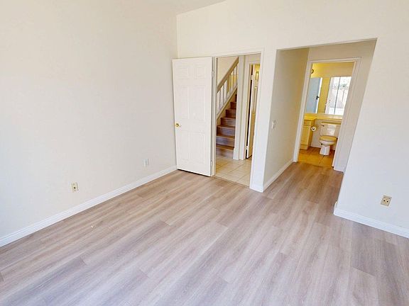Welcome to this beautiful Capri home! Recently updated with fresh interior paint, new window treatments, and stunning wood-like flooring, this residence is move-in ready. The open floor plan is light and bright, featuring a formal living room, dining area, and a spacious eat-in kitchen. Convenient indoor laundry and a bedroom with a full bath are located downstairs. Upstairs, you'll find two additional bedrooms and two full baths, including a large master suite with a walk-in closet and a luxurious master bath with a soaking tub. The private rear yard offers beautiful palm trees and plenty of space for barbecues and outdoor entertaining. Additional highlights include a two-car garage, central heating and air, and access to community amenities such as pools and tennis courts. Near great parks, hiking and biking trails, dinning, shopping and more.