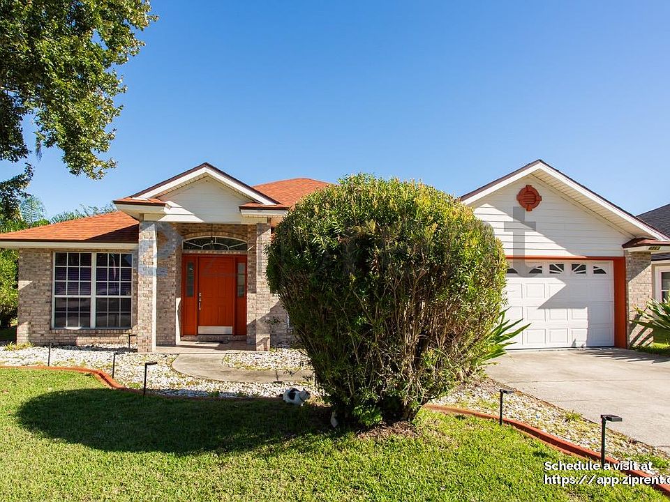 Welcome to 4863 Frost Lake Dr, a charming residence nestled in the desirable area of Jacksonville, FL. This beautifully maintained home boasts a welcoming exterior with a brick facade and a vibrant red door, creating an inviting first impression. The expansive front yard offers lush greenery and is complemented by a well-manicured lawn, adding to the home's curb appeal.Beautiful all-brick home on a corner lot in the desirable 32258 area! This 1,946 sq ft home features a modern open floor plan with high ceilings and abundant natural light. The 3-bedroom split layout provides privacy, and there's a dedicated office space for work or study. Enjoy stylish, low-maintenance vinyl-plank flooring throughout. The spacious kitchen boasts an island perfect for cooking and entertaining. Outside, a fenced yard and tiled porch area offer great space for relaxing or gatherings.