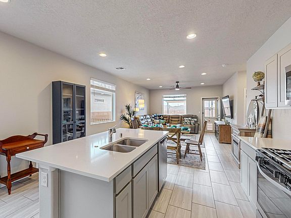 This beautifully maintained, open-concept home in Rio Rancho features 3 bedrooms and 2 baths, with stylish tile floors throughout the living areas and cozy carpet in the bedrooms. Enjoy ceiling fans in every room, plus the comfort of refrigerated central air. The primary bedroom offers a private ¾ bath with a step-in shower and a spacious closet. The kitchen is a standout with its granite countertops, large island, and roomy pantry—perfect for cooking and entertaining.