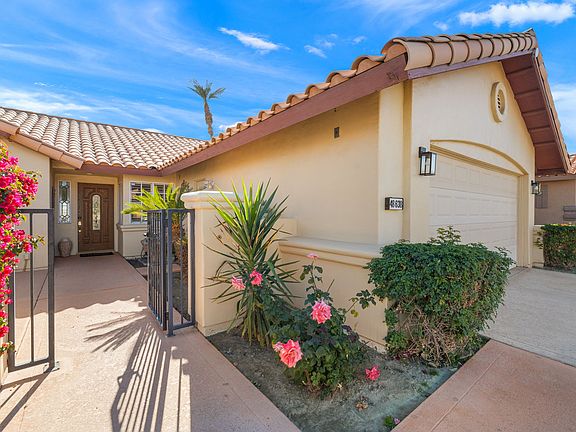 Cute, cozy and tastefully decorated seasonal rental on hole 7 of the Royal Course at Indian Palms Country Club. This custom 3 bedroom 2 bath home faces East and is close to the green giving you beautiful sunrises in the morning, the occasional hot air balloon, and the entertainment of golfers playing thru. There are three generous bedrooms with queen beds and TVs, a shared hallway bath with tub/shower and en-suite for the primary bedroom. There are two living spaces inside the home and two more outside. The front patio will give you warm sunsets and the back patio gives you a sparkling pool and spa, fireplace, covered dining space and a small grassy area for games. The home is equipped with everything you need to make your stay enjoyable. Renters will have access to the two car garage. Call today for availability or a private showing. RENTED: 3/29/25 - 5/3/25