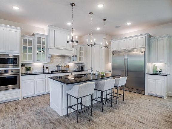 NORMANDY HOMES CANTON floor plan. GREENBELT, WATER VIEW LOCATION! High Peak Tudor Elevation with covered front porch. Awesome one-story home with 3 bedrooms & 3 full baths! Open concept home offers a large dining space, family room and kitchen loaded with a walk-in pantry and a large working island! Strut your inner Chef with this Chef Kitchen Cabinet option and entertain with style. Your overnight guests will enjoy having a private bedroom with en suite bath. This floor plan is very versatile to change as your needs change. Enjoy beautiful upgrades such as wood flooring, granite and quartz counter tops, lovely kitchen back splash, tile work and much more! This location won't last so come visit us soon!