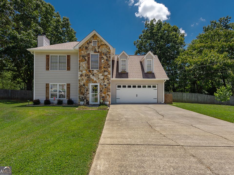 Well-maintained beautiful 4 bedroom, 2.5 bathroom home is minutes to downtown Sugar Hill! The lovely kitchen features white cabinetry, granite countertops, tile backsplash, separate island, stainless appliance package, and eat-in breakfast area with bay window and amazing view of the backyard. Separate formal dining room. Spacious family room presents a stone surround fireplace with raised hearth, white mantle, and ceiling fan. Updated half bath on main level. Upstairs you will find the oversized owner's suite with complete remodeled bathroom - huge tile shower with bench, 2 inserts, sliding glass doors, and double vanity. Oversized secondary bedrooms all with ceiling fans. Enormous backyard with privacy fence, large patio area, swing that is perfect for enjoying your morning coffee of evening glass of wine, playground area, planter space, and separate storage building. Additional features: high end laminate flooring, water heater, garage door - all just 2 years young, all toilets replaced to low flow, and plumbing on main level to PVC. This is your new place to call home! To the best of the seller's knowledge, there is no polybutylene plumbing inside the house, and the pipe from the street to the house was replaced by the previous owner.
