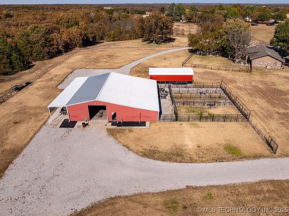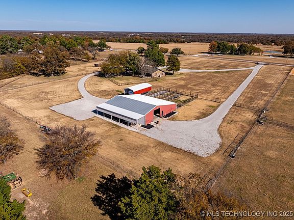 Discover the perfect blend of comfort and country living with this spacious, well-maintained 3-bed, 2-bath brick home set on 11 beautifully manicured acres just east of Marietta, OK. This property offers two inviting living areas, an enclosed patio with an underground safe room, a brand-new 2025 roof, and fresh paint throughout. Ideal for horse lovers, the property includes a large barn with 3 stalls & runs with room for additional stalls, a hot-water wash rack, tack room, and covered trailer storage with RV hookup. The perimeter of the property is all fenced with horse fencing and slick wire and has been cross fenced with lean-to sheds in each trap. There is a 130' x 330' arena with excellent ground, ready for training or recreation. The insulated wellhouse doubles as small workspace or craft room. All of this sits less than 20 minutes from I-35 and just a short drive to Lake Texoma, Lake Murray, and the new Lake Crest Casino—country convenience at its finest.