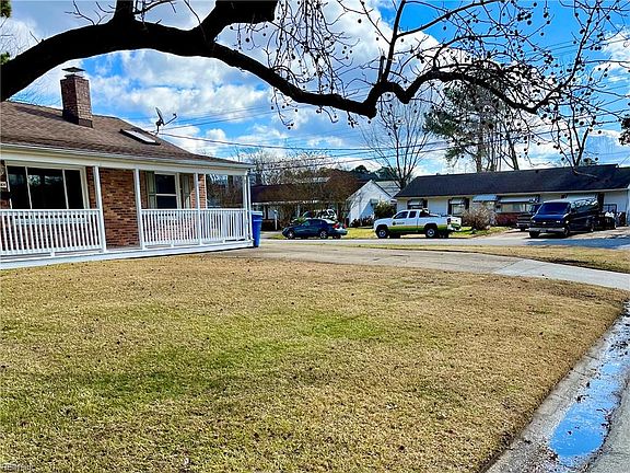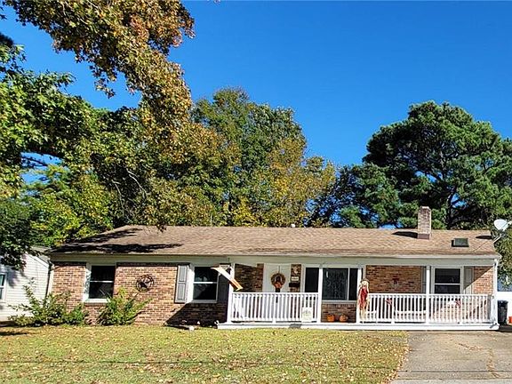 Cute brick ranch situated on a corner lot. 3 bedroom and 1 bath home. Living room w/fireplace and large den. Flex space adjacent to utility room. Partially fenced-in backyard with detached garage w/electric. Nice rocking chair front porch. Established neighborhood near Town Center/Pembroke with easy access to shopping, dining and easy access to the interstate. Centrally located-- 20 mins from Norfolk, Little Creek, Oceana bases. Square footage per recent appraisal. Make this your new home today.