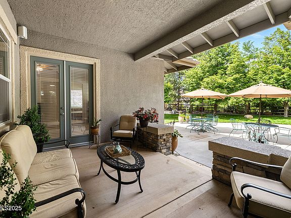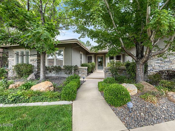 From the moment you walk in you can feel the pride of ownership. Located behind the gates of Mountainshyre in the sought-after neighborhood of Caughlin Ranch, this beautiful single-story home offers an ideal layout with the primary suite thoughtfully separated from the remaining bedrooms. Featuring 4 bedrooms plus an office, 2.5 baths, and 3 car garage the home is designed for both comfort and functionality. The kitchen is a chef's dream with double ovens, multiple sinks, a butler's pantry, ample prep space, breakfast nook, and breakfast bar. The laundry room doubles as a mudroom and includes its own sink for added convenience. Additional features include wood floors, crown molding throughout, central vacuum, a new hot water heater, and a spacious primary suite with a huge walk-in closet. Step outside to discover a private garden oasis - immaculately maintained with lush landscaping, a large patio, and grass. The backyard is fully fenced, stubbed for a gas BBQ, and perfect for peaceful relaxation or entertaining. Enjoy scenic walking trails right in the neighborhood, and take advantage of the home's central location, just minutes from the Reno-Tahoe Airport, shopping, dining, and more.