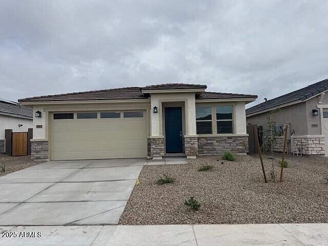 Welcome to a beautiful single story home located in the heart of Buckeye. This stunning new construction home features 3 bedrooms and 2 bathrooms, offering ample space for comfortable living. The 1606 sq ft layout includes a spacious great room, a modern kitchen with 42'' upper cabs, quartz counters, and tile backsplash. The primary suite boasts a large closet while the additional bedrooms provide plenty of room for family or guest. Step outside to enjoy a large, covered patio on 5750 sq ft lot, perfect for entertaining or relaxing. Additional highlights 9- foot ceilings with 8-foot 2 panel interior doors. laminated flooring throughout, with tile in the bathrooms, mud room and laundry. Carpet in study and bedrooms. Located in the desirable Montana Vista.