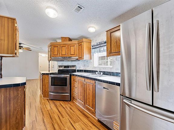 Welcome home to this well-kept 2 bedroom, 2 bathroom manufactured home offering just over 1,000 sq ft of comfortable living space. This 1996 home has been nicely maintained over the years and is ready for its next chapter. Step inside to find brand new hardwood floors in the main living area, a brand new dishwasher, and newer appliances. The kitchen features uniquely designed glass cabinets with plenty of storage, while the laundry room offers even more cabinet space plus washer/dryer hookups. Both bedrooms include built-in closets, and the bathrooms feature a double vanity and wood flooring. Outside, you’ll love the brand new screened porch and new front deck—perfect for relaxing under the mature oak trees that provide plenty of shade. The yard is fully chain-link fenced and includes a carport for covered parking. The roof was redone about eight years ago, and the AC is in good working condition. Whether you’re looking for a first home, a vacation getaway, or a great rental opportunity, this property has endless potential and plenty of charm
