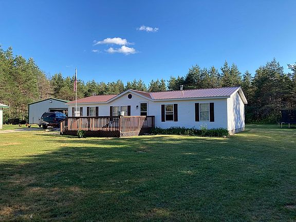 Nicely secluded home on almost 12 acres. New interior rustic remodel in 2021 including new flooring throughout except the dining room, new wall coverings, fresh paint, complete kitchen remodel including huge island. All appliances stay with home, which includes 2 year old Frigidaire gallery series black stainless appliances, kitchen appliances are as follows. 26 cubic ft side by side with water and ice in the door, the stove has an extra large cooktop with 5 burners , and an oven big enough to bake all your families needs, large over range microwave, large capacity dishwasher to clean up from those large family gatherings. GE super capacity washer and dryer new November 2020. New lighting throughout. New wood stove installed December 2020 including double wall stove pipe to keep your family safe, heats the home with ease from December until April we used 8 face cord of firewood to heat the home. 5" well new pressure switch and 30 gallon bladder tank installed fall of 2020. 40 year warranty metal roof installed September 2018. 24 X 24 garage very insulated with propane ran into it for your heat source. 30 x 32 pole barn for all the toys, bikes, ATV's, snowmobiles, etc! Pole barn is a drive through and very well insulated with propane ran into for your heat source. Upgraded electrical with 200 amp service to the garage and pole barn. Has a Generac transfer switch already installed for your generator. 11.62 acres of standing pines with trails to enjoy for your outdoor pleasure. Northwest corner of property connects to state land. Owner does not use furnace much during winter due to the wood stove. Only 4 miles from town. 1/4 mile to the trails. This secluded piece of paradise guarantees quiet starlit nights by the bonfire and peaceful days away from the hustle and bustle of city life. Interior pictures to come this weekend.6-20-21 Cash or Conventional Mortgage only no land contracts $$ Realtors $$ bring us a buyer and earn 3% commission!$$