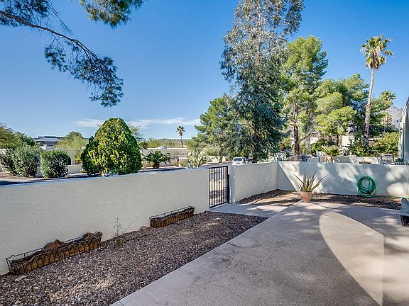 Rare opportunity in secluded Hidden Valley Townhouses. Beautifully remodeled end-unit with versatile split bedroom floor plan. Gorgeous contemporary kitchen w/stainless steel appliances, breakfast and wine bars. Luxurious bathrooms, tiled kitchen and entryway with neutral carpet in living areas. Massive arched windows add architectural charm and flood the home with light and cheer. Enjoy incredible sunsets and glorious Catalina Mountain views from spacious, walled -in patio. Walk to Sabino Canyon and Canyon Ranch; restaurants and shopping nearby. HOA provides clubhouse, community pool/spa and refuse collection. Catalina Foothills Schools. These homes are well cared for & treasured by owners; remodeled units are rarely available! This one won't last long!