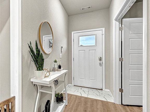 Discover this exceptional family home offering space, style, and modern upgrades throughout. With four spacious bedrooms conveniently located on the second level and a dedicated main-level office, this home is designed for comfort and function. The open floor plan creates an inviting flow, enhanced by high-end finishes including brushed gold light fixtures, beautiful cabinet hardware, and upgraded countertops that elevate every room. Step outside to a fully fenced backyard that backs directly to the neighborhood walking trails—perfect for privacy and outdoor enjoyment. An extended covered patio provides an ideal space for entertaining, relaxing, or watching kids and pets play. A rare combination of thoughtful design and elevated features, this home is move-in ready and built for the way you live.