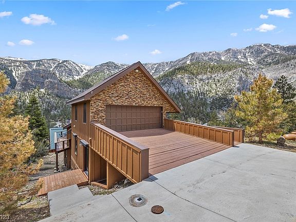 Experience mountain living at this impeccably designed home in the prestigious Echo View Subdivision in Mt. Charleston. Sited on a premium setting lot, this residence borders USFS land to the East, providing unparalleled access to nature. Enjoy grand forest + mountain views visible from every window. Unwind and embrace serenity on one of the multiple deck areas, or step out directly into the abutting forest. This exceptional location offers one of the finest lifestyle settings in the area. Attention to detail is evident in the high-quality, carefully chosen materials used throughout the home. Indulge in the perfect balance of luxury and outdoor living, surrounded by the breathtaking landscape of Mt. Charleston. Rolladen shutters, heated tile flooring downstairs, three spacious bedrooms, luxurious kitchen w/custom breakfast bar, game room/family room, two car garage + more! Furnishings included. Fresh mtn air + four seasons while still being within 30 minutes of world class Las Vegas!