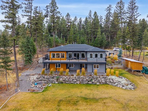 Welcome to this stunning contemporary walk-out rancher nestled in the peaceful cul-de-sac community of 108 Mile Ranch. Designed with comfort, elegance, and functionality in mind, this 4-bedroom, 4-bath home offers a spacious, light-filled layout perfect for both relaxation and entertaining. The open-concept living and dining area is bathed in natural light, featuring an airtight wood-burning fireplace that adds warmth and charm. The gourmet kitchen is a chef's delight, complete with a large island, dual ovens, a 36" gas cooktop, and abundant cabinetry for all your culinary needs. The main-floor primary suite provides a private retreat with a luxurious 5-piece ensuite and a generous walk-in closet. The walk-out lower level expands your living space with three additional bedrooms, two full baths, a versatile recreation room, and ample storage. Step outside to beautifully landscaped grounds that offer serene outdoor spaces and captivating views - ideal for quiet mornings or hosting guests. Every detail of this home reflects quality craftsmanship and thoughtful design, promising a sophisticated and comfortable lifestyle in one of the area's most desirable settings. Experience the perfect balance of contemporary style and natural beauty - your new home awaits. Please note all interior photos are virtually staged.