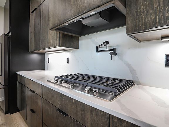 Cozy gas fireplaceSleek maple cabinetryBlack stainless appliancesHuge windowsSun drenched southern exposure