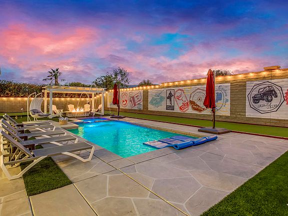 Step into this beautiful vacation home situated in Montage at Santa Rosa just blocks from the Indio Polo Grounds which hosts numerous concerts and events throughout the year - namely, Coachella, Stagecoach and even Polo Matches. This operates as a permitted short-term rental in the City of Indio; HOA approved. Offered fully furnished - all rooms have been thoughtfully furnished and decorated with our guests enjoyment in mind. Impressive outdoor amenities to include a private PebbleTech pool and spa, outdoor fireplace and kitchen with pizza oven, outdoor seating for over 25 people, large firepit parially covered with pergola, bocce ball, and mini golf. This home has everything your guests desire to stay and play.