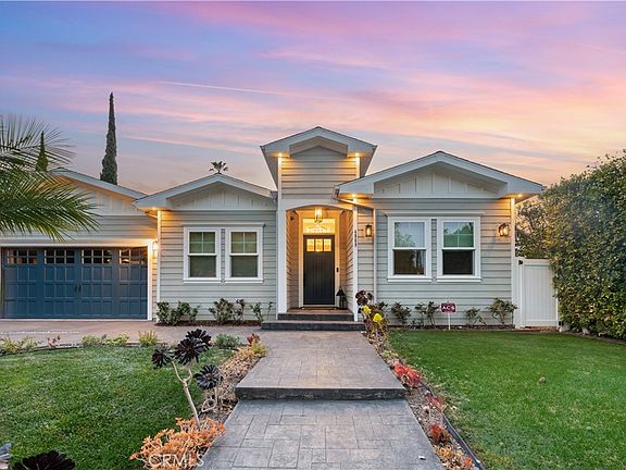 Luxury living at its finest. Nestled South of the Boulevard, a timeless Cape Cod Single-Story home awaits boasting the finest of finishes and building design. Every square inch of the home has been well-thought out and crafted with meticulous attention to detail. This gated 5 bedroom, 3.5 bathroom, 3600 square foot resort-style home leaves nothing left to be desired. Upon entering you’ll find an inviting atmosphere complemented by a neutral color palette featuring high ceilings, exquisite chandeliers, gray wide-plank wood flooring, beautiful wainscoting and coffered ceilings. Smartly designed, the bedrooms are tucked away while the main living area is open yet defined, perfect for gatherings. The backside bi-fold doors and vaulted outdoor pergola creates a seamless blend between the interior and exterior. Highlights include a stunning glass-covered wine wall in the dining room, an open concept kitchen with large center island, state-of-the-art appliances including a 60” Electrolux refrigerator and Bertazzoni italian range, custom built-in bookshelves in the family room, an expansive primary suite with a vaulted beam ceiling complemented by an accent wall and bi-fold glass doors to the private backyard, a spa-like primary bathroom with oversized shower and soaking tub, a built-in mudroom, built-in closets in every bedroom, and an extraordinary backyard featuring a sparkling pool/spa, grassy yard, and complete with a well-equipped outdoor kitchen. Additional amenities include a Control4 ready system, surround sound speakers, a 9-camera HikVision security system, Ring doorbell and a Waterdrop water filtration system. Easy access to the freeway, walking distance to Ralph's and moments to Ventura Blvd with world class dining and entertainment. Don’t miss this opportunity to make your dream home a reality!