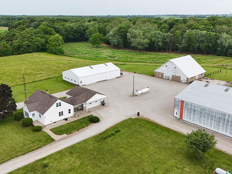40 acres of land with a well maintained 1.5 story home and multiple outbuildings in the beautiful rural Potomac IL! This 3 bedroom home offers a spacious kitchen with plenty of cabinetry, dining table space and views of the country! The basement is perfect for needing tons of storage. Bedrooms are nice sized with walk in closets. Need workshops? This property has several! Such a pretty piece of land!