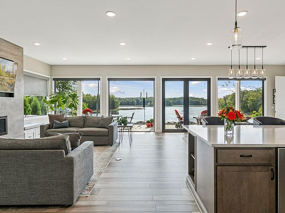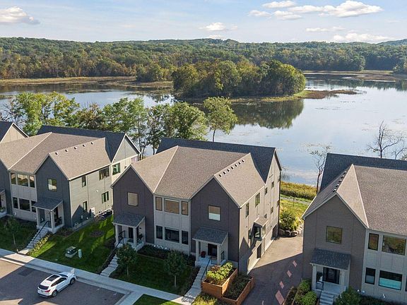 Enjoy floor-to-ceiling windows that bring the outdoors in, allowing you to spot eagles nesting on the nearby island and watch trumpeter swans glide across the lake—all from the comfort of home. Natural light pours into the south-facing lakeside rooms, enhanced by remote-controlled Hunter-Douglas shades for effortless adjustment. This townhome’s open-concept design features thoughtful built-ins, quality finishes, 3 private bedrooms, a personal elevator, and an oversized garage.