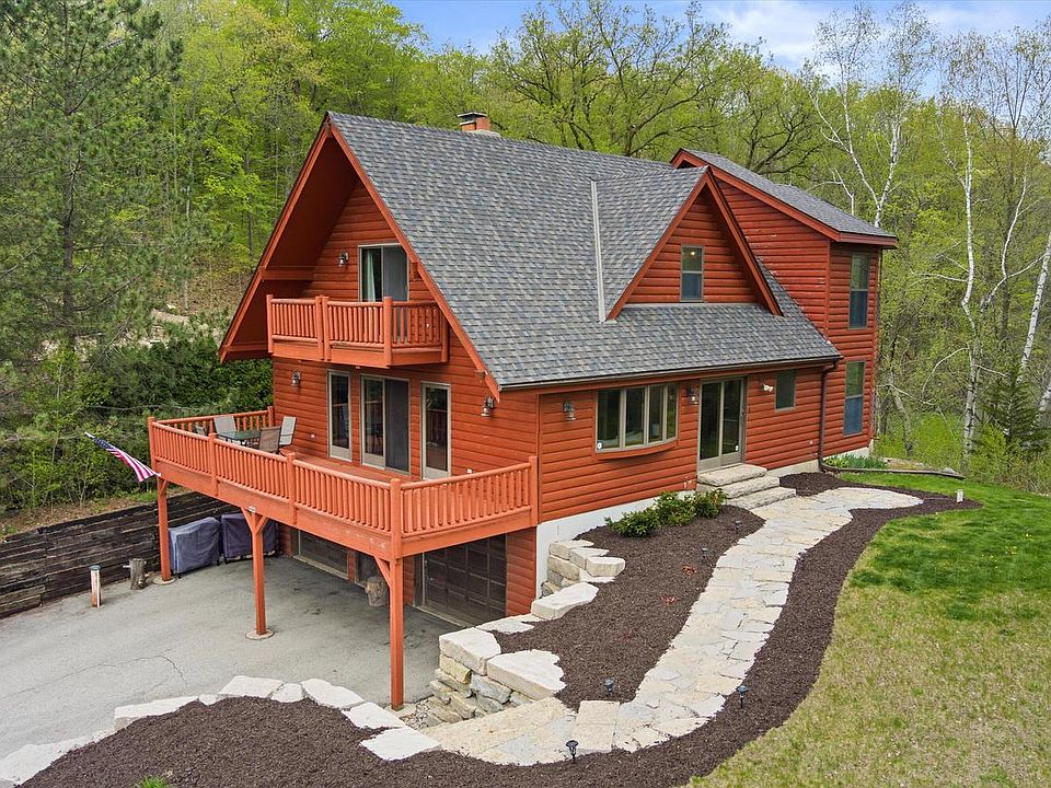 Imagine owning a beautiful half-log home AND, just steps away, a separate lake lot w/pier to moor your boat on Friess Lake all incredibly priced at $525,000!Home is bright & airy w/an abundance of windows. Kitch remodel in 2019 & SS appl just 5 mths old. LR w/impressive stone NFP+access to huge deck w/beautiful views. Main flr BR/office & full BA. Upstairs: 2nd full BA and you can take your pick of which BR you make the MBR - the window-wrapped room w/a tree-house feel or the front of the house w/priv balcony?2.5 car Tandem GA +space used as mudroom before entering house. Beautifully hardscaped lot w/wooded backdrop. New roof 2022, AC 5 yrs, H2O softener+ Iron Filter 3yrs. Walking easement to 10Wx20D lake lot & priv pier. Recreational Lake: boating/swimming/skiing/fishing.1 yr warranty