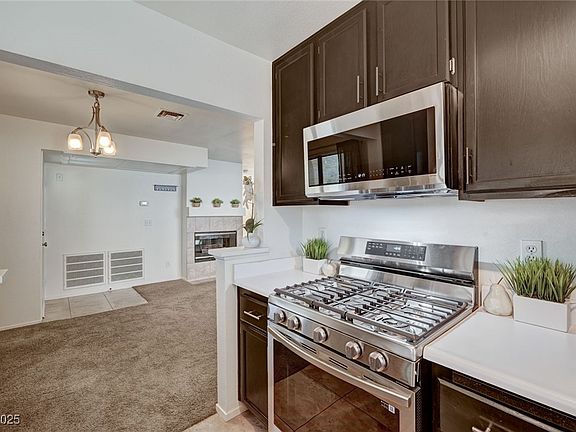 WOW! Amazing Find 2 bed/2 bath on Desirable First Floor! Great Floor Plan with Split Bedrooms on Either Side of the Living Room! Cozy Fireplace and New Ceiling Fans Throughout! Fresh Paint - Clean and Move in Ready! Newer High End Stainless Steel Appliances and Stylish Light Fixtures! Sizable Primary Bedroom with Large Walk In Closet and Ensuite Bathroom that Boasts a Double Sink Vanity and Walk In Shower with Glass Doors! Awesome Enclosed Patio with Wood Finished Flooring and Sliding Screen Doors! Convenient in Unit Laundry! Great Location Within the Community. Just Steps Away from the Pool! GATED Community with a Lush Grounds and Refreshing Pool! Minutes from the Strip, T-Mobile and Allegiant Stadium! Very Convenient to Shopping, Dining, Schools, Parks and Easy Freeway Access! Fabulous Opportunity!
