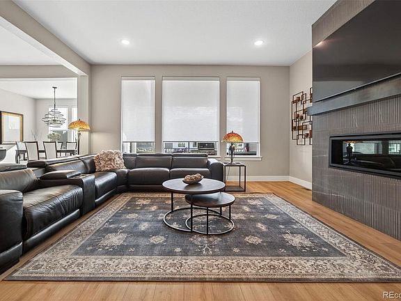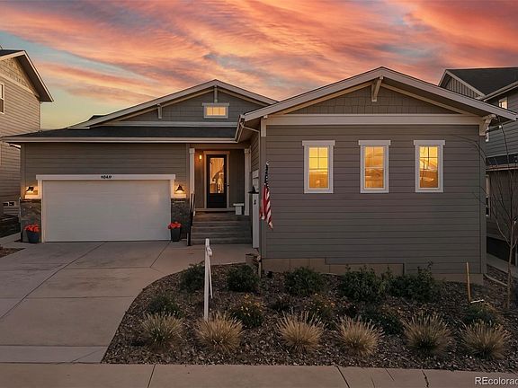 Nestled in the picturesque bluffs of Castle Rock’s Montaine community, this impeccably maintained and light-filled ranch home is just steps away from the communal amenities, and minutes from Colorado’s finest hiking/biking trails and the quaint shops and restaurants of historic downtown Castle Rock! Offering multiple areas for gathering and entertaining, this elevated Brightland home built in 2023 has been upgraded far beyond the competition, featuring a well appointed luxury kitchen with a sizable quartz island that seats 6, 42” cabinetry with crown molding and soft-close doors, pull out drawers, and a separate prep kitchen area with a large pantry, prep sink, and second dishwasher. The Primary suite is light, bright, and spacious, and the enormous closet, which connects directly to the laundry room (washer, dryer, and cabinetry included!) has room for an accessory island or ottoman. The Primary bath has a step in shower, and is equipped with grab bars. The secondary bedrooms are connected with a Jack and Jill full bath, and a separate powder room upon entry completes the main floor living space. The finished basement features 9 foot ceilings and a huge family room (plumbed for a wet bar), another spacious bedroom with walk-in closet, 3/4 bath, an additional fully shelved walk-in closet, and tons of unfinished square footage to re-imagine as your own unique space! Recent upgrades include several custom Hunter Douglas remote blinds (operational from your phone!), designer lighting, fully finished garages with painted drywall and epoxy floors, custom window well covers, and a fresh exterior paint job. The home backs to a green belt, with the front yard featuring gorgeous xeriscaping with irrigated plantings, showcasing the curb appeal of this one of a kind, low maintenance home. The covered back porch includes a ceiling fan and mount for an outside TV, and flows into a lush sprinkler-equipped back yard. Why buy new when you can have all of these next-level extras?!
