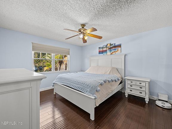 WALK to the BEACH! Incredible opportunity to live just blocks from the ocean! This gorgeous 4-bedroom corner-lot home in Jacksonville Beach offers the perfect blend of coastal charm, comfort & convenience. This coastal charmer with plenty of guest parking & TWO car garage is within walking/biking distance to top restaurants & shopping- beachside living at its best! Enjoy your very own tropical oasis: large front yard surrounded by lush palm trees, an expansive fully fenced backyard & a paver patio w gazebo! While the newer roof & gutters (2022) & Hardie Board siding (2017) offer peace of mind. Inside, you'll fall in love with the beautiful engineered hardwood floors, soaring ceilings & large windows that fill the home with natural light. The inviting living room boasts soaring ceilings & a wood-burning fireplace - perfect for cozy evenings w family! The kitchen features abundant cabinetry & counter space, newer SS appliances & a large window with backyard views. The primary bedroom overlooks the backyard & features direct access to the updated bath, complete w a lovely vanity & frameless walk-in shower. The wood-tread stairs add a touch of elegance, while the secondary bedrooms are generously sized with walk-in closets. Additional highlights include a new electric water heater (2024), whole-home gutters, full irrigation system, well system for irrigation, water softener w filtration system & storage closet under the stairs. This lovely beach home truly has it all - location, upgrades & style! Don't miss your chance to live just steps from the sand & truly embrace the Florida Beach lifestyle!