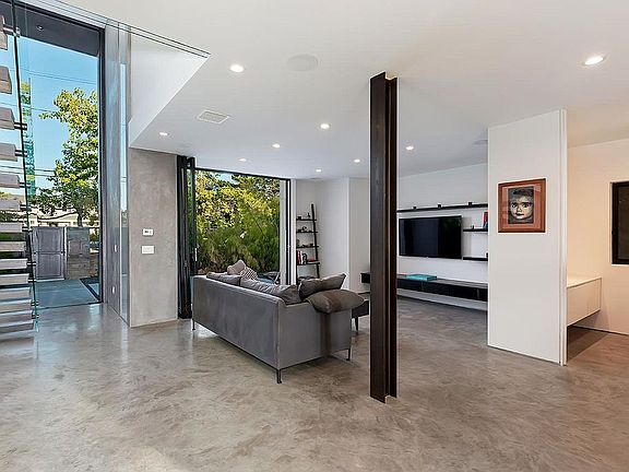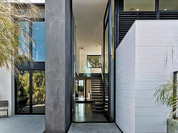 Sleek and stunning, architectural home conceptualized by the award winning architectural firm Minarc features three levels with five bedrooms and four and a half baths. From the private enclosed front yard you enter through an 18 ft breathtaking glass door. The main floor with soaring ceilings and a bright open floor plan with a custom designed gourmet kitchen, dining room, living room, and family room all capture the lush yard. The sliding glass doors from the family and living rooms are perfectly designed to integrate indoors and out for the ultimate California living experience. Stylish cabinetry in the kitchen blend seamlessly, Silestone counters, Wolf countertop range and oven, Sub Zero refrigerator, freezer, and wine fridge; and large island with bar seating complete this sophisticated kitchen. Bright and airy Master Suite with large walk-in closet has a spa like bath, centered around the elegant soaking tub. Striking second bedroom suite with floor to ceiling windows and private balcony encompass the upper floor. The lower level has three bedrooms and two bathrooms with a bonus family room/den that opens on to the spacious back yard and patio, perfect for entertaining. A fully wired visual & audio smart home includes Sonos sound, & electric blinds. The perfect blend of modern and tranquility. No detail was spared in the remodeling of this exceptionally refinished home. Located in the highly sought after El Medio Bluffs area of Pacific Palisades, near local schools, restaurants, Palisades Village, and the beach.