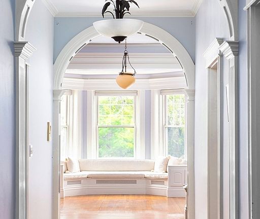 Decorative fireplaceClassic archwaysTimeless architectural detailSpacious family roomHardwood floorsBanquet-sized dining roomYear-round sunroom