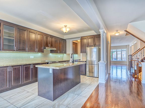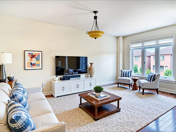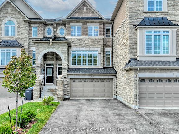 Discover an Executive Freehold Large Townhome with 2290 sq. ft. (Mpac) + Professionally Finished Spacious basement with a Wet bar. Nestled on a Quiet Court in the Highly Sought After Meadowvale Village Community. This Meticulously Maintained Residence Boasts a Bright and Functional Open Concept Layout with High Ceilings, Hardwood Floors on the Main and Upper levels, and Oak Stairs with Iron Pickets. The Gourmet Kitchen W/Quartz Countertops, Custom Backsplash, and a Central Island Overlooking a spacious Breakfast area and a Formal Family Room for entertainment, with a walk-out to a deck from the Breakfast area. The Primary Bedroom Offers A walk-in Closet and a 5-piece ensuite. This Lovely home provides a professionally finished walk-out basement to a fully fenced yard and a 2 Step Deck, Perfect for entertaining. For the convenience of the Family, the Laundry Room is located on the Upper Floor. Bright Home with Large Living and Dining Room comes with an Electric Fireplace. Freshly painted with Benjamin Moore paint. The basement has a Separate Entrance through the Garage. Additional features include no sidewalk, Parking for 8 Cars (6 in the driveway and 2 in the garage), and a Very Functional Layout Designed for Modern Living. Conveniently located within Walking distance to School, Park, Golf Course, Plaza, Restaurants and Shops. Easy Access to HWY 401/407/410. Freehold home with no Additional Fees at all. **** Property is Virtually staged***