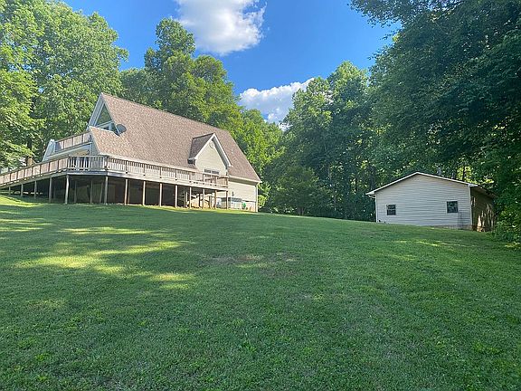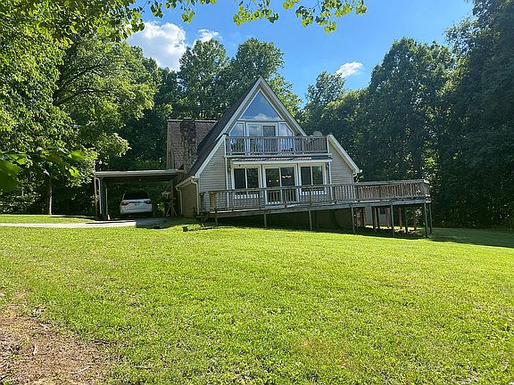 LOCATION, LOCATION, VIEW, VIEW, NEAT, NEAT! All this and more with this beautiful 2160 sq. ft. chalet-type home that sits on a gorgeous 5.63 acre site with an amazing view! As you enter the front foyer from the covered carport you will see this well maintained home that offers a nearly completed, MODERN renovation! There is a LARGE, open living space, with 3/4" thick, solid hardwood hickory flooring, containing a formal living room w/large stone fireplace (gas logs w/remote temp control, formal dining area, den with access to wrap-around deck and newly installed windows and sliding glass door. There is also a fully remodeled, custom designed, kitchen with solid wood cabinets, floor to ceiling pantry with rollout drawers (plus a 2nd pantry closet), quartz countertops, pendant lighting, deep SS sink, LED lighting over sink & under cabinets, all SS appliances includes refrig., dishwasher, ceramic top range (also convection), & microwave. There is a large bedroom and bath on this main level plus a laundry room. The 2nd level has 2 more bedrooms and a full bath. One of these bedrooms has vaulted ceilings and a sliding glass door to a private deck for enjoying that awesome view.