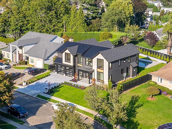 Introducing a one of a kind new construction modern luxury masterpiece with cutting edge architectural and interior design by Gianni Developers and built by reputable builder. Situated on a quarter acre property this 6,100 sq. ft. showpiece has been crafted with the highest level of quality, detail, and innovation a true statement of modern luxury living. Step through a grand two story foyer featuring a floating staircase tower with custom glass railings and floor to ceiling windows that flood the home with natural light. The heart of the home is an expansive open concept living space a chef’s custom dream kitchen equipped with a full Thermador appliance suite, including an oversized refrigerator and freezer, built in espresso machine, double wall ovens, wine tower, oversized range and a six seat center island. A walk in pantry and spacious dining area open seamlessly to a bright and airy family room with built in wetbar equipped with ice maker and drink drawer perfect for entertaining. Completing the main floor is a full first-floor ensuite bedroom and a fully finished two car garage. Additionally, the home features a large laundry closet on the first floor fully equipped with custom cabinetry and appliances for added convenience. California style folding glass doors extend the living space outdoors to an oversized resort style backyard. Enjoy a covered outdoor living area with a fully equipped kitchen, heated inground saltwater pool, and lush landscaping designed for privacy and leisure. The walk out basement opens directly to this serene oasis, offering easy flow between indoor and outdoor spaces. The primary suite is a private sanctuary featuring a custom four panel slider leading to a private balcony overlooking the pool. Indulge in a spa inspired designer bathroom, dual walk in closets, and exquisite custom millwork. An oversized full laundry room on the second floor, fully equipped with sink and modern appliances, provides ultimate practicality and luxury. Three additional spacious bedrooms with vaulted ceilings and designer bathrooms complete the upper level, each thoughtfully designed with modern elegance. The fully finished basement offers generous living space with large windows, double door access to the backyard, a full bathroom, and an additional bedroom perfect for guests, a gym, or home office. Nestled mid block in the highly sought after Salisbury Estates section of Westbury, this residence combines tranquility with convenience. Enjoy proximity to Michelin star restaurants, boutique shopping, and just a short ride to NYC. With low neighborhood taxes and top rated schools, this home delivers unmatched value in one of Long Island’s most desirable communities. Live in pure luxury where every detail is a statement of craftsmanship, comfort, and class. Nothing left to do besides drop your bags move right in and experience the extraordinary.