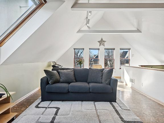 Nestled right in the heart of St. Paul's Cathedral Hill neighborhood, this beautiful 3rd floor condo is your own private oasis. Filled with light, it has vaulted ceilings and abundant skylights. The open main living area can be configured in multiple ways, with beautiful cork flooring and a cozy, wood burning Jotul brand stove. Enjoy the private treetop deck overlooking the backyard, in unit laundry, beautiful updated bathroom & dedicated garage space. Just steps from wonderful restaurants & shops on Selby Ave and a short walk to Grand Avenue, this is the ultimate in urban condo living!