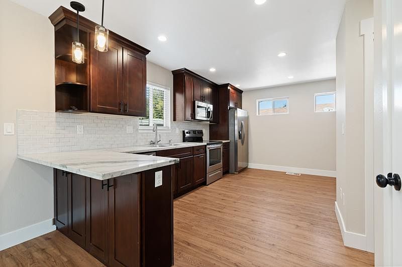 Property Available for end of July Move-in. DO NOT DISTURB OCCUPANTS. New Construction steps away from UNR and easy freeway access. Spacious 3 bed/ 2.5 bath home with 1 car oversized attached garage and additional designated parking space. House is complete with soft close cabinetry installed throughout and stainless appliances (Photos show old appliances). Ceiling fans in all bedrooms and living room along with dual zone heating and cooling with energy efficient mini-splits. No Pets. Inside this new construction home, you enter from the side yard into the living room. Kitchen has breakfast bar and ample cabinets for all your needs. Appliances include, built in microwave, refrigerator, dishwasher, garbage disposal and electric stove. There is a dining area at the back of the kitchen perfect size to accommodate a farm table. Down the hall there is a large storage closet, pantry, half bath, and garage door to the oversized one car garage. Upstairs you will find 3 bedrooms all complete with a ceiling fan and prewired for data ports/ cable access. One bedroom boasts a covered balcony with city views. Shared bathroom has double sinks and tub/shower combo. Master bedroom has a shower stall and single sink with large counter space. Laundry is located in the upstairs landing. Cabinets in the laundry are soft close as well! Backyard is shared so no pets please. Owner will pay water, sewer, trash, and landscaping. All other utilities are the responsibility of the tenant. Access is through the alleyway. Lease is one year with option to renew. Owner pays water, sewer, trash, and landscaping. Backyard is shared so no pets please. Parking off-street / attached garage and on-street