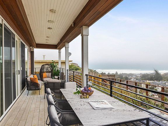 Experience sweeping ocean vistas from the kitchen, dining room, and backyard—and wake up each morning to breathtaking scenery from the primary suite. This 3-bedroom, 4-bathroom home offers 2,414 sq. ft. of modern luxury and was essentially rebuilt in 2016 (only one wall retained for permits). Nearly everything is new—foundation, framing, electrical, plumbing, finishes, solar, and more. Inside, you’ll find elegant details including a tiled foyer, recessed lighting, crown molding, detailed baseboards, dual-pane windows, and engineered hardwood floors. Each bedroom is a private suite with its own full bathroom—perfect for multi-generational living, hosting guests, or rental opportunities. The gourmet kitchen opens seamlessly to the living and dining areas, creating an ideal space for gatherings. Enjoy Pacific Ocean views, cozy movie nights with a built-in projector, and peace of mind with a premium security system. Additional highlights include indoor laundry, abundant storage, and carefully designed finishes throughout. Located just 2 minutes from Edgemar Park and close to beaches, hiking trails, shopping, and top-rated schools. With high-quality craftsmanship, a versatile layout, and unmatched coastal charm, this Pacifica property is truly one of a kind.