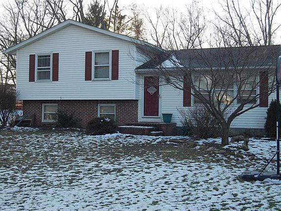 This 4-level split offers 3 bedrooms with large closets, a possible 4th bedroom or office on the lower level. Living room, eat-in kitchen (appliances stay) walks out to a deck/patio with above ground (27 ft round) swimming pool, large fenced in backyard plus storage barn. Family room has gas fireplace. Newer furnace (2008), hot water (2012), sump pump - 2 years old. New main bathroom and new granite countertop in kitchen.