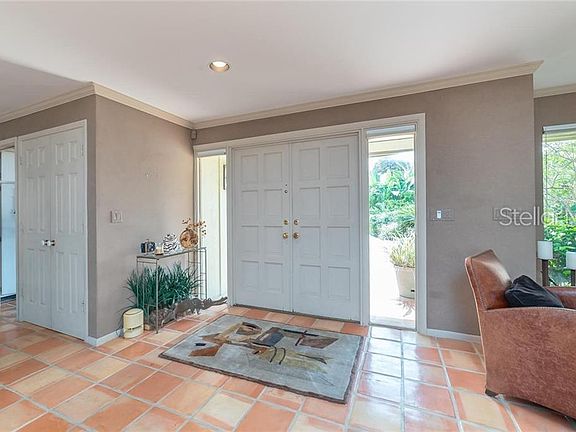 Charming and artsy with an open floor plan...simply update the kitchen and baths and you have a lovely garden home in a spectacular location. There are 3 bedrooms although one has been converted to a den/office but it's easy to convert back. There is a separate bonus room being used as a second office. The kitchen has a breakfast nook with French doors to the garden area with mature foliage. Stacking sliding glass doors leading to the pool and pavered deck make entertaining easy. This home has nice curb appeal, a long circular driveway and oversized two car garage. The owner would consider selling all the furniture and art work under separate bill of sale. Easy to renovate and loaded with great possibilities, this home could be made just perfect for a buyer wanting a ranch home or it could be a knock down for a new home. Being sold "As Is".