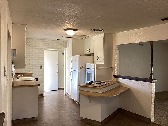 Landscaped front and backyardLinoleum flooringDining areaFormica countersCovered back patioCentral heat and airGarbage disposal