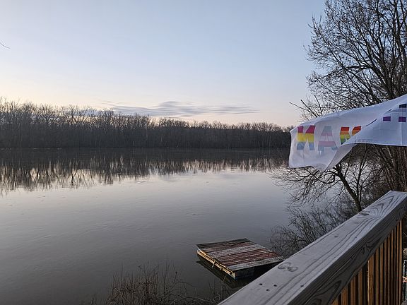 Enjoy this beautiful waterfront property close to town! Feels like you are in the country but only 10 minutes from downtown and walking distance to white pine trail and whitecaps stadium. Quickly get home from work and have beautiful views of the sunset and sunrise with a half acre of fenced yard for your pets. Fully remodeled with a brand new deck and all new appliances in 2023/2024. Balcony upstairs overlooking the water. Located on a dead end overlooking the sandbar and a park with walking trails on the other side. Woods on the other side of the road with deer and turkeys. Bring your kayak or pontoon and enjoy living like you are on vacation.