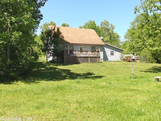 HOME ON 20 ACRES! Enjoy the peace of living in the country in this 2-level 3 bedroom home built in 1997 surrounded by Ozark woods. It has 1-3/4 baths, eat-in kitchen, separate utility room, master bedroom on the main level, central heat pump plus small LP heater for back-up, vinyl sided exterior, dry walled interior, double pane windows, garage, decks front and back, lots of flowering bushes and trees, and vegetable garden. The land is perimeter fenced, and it's on well with county water at the entrance.